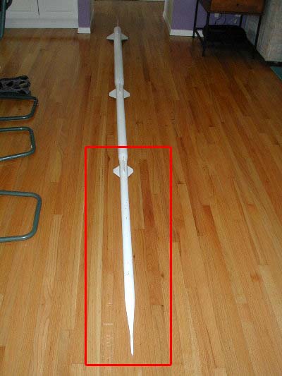 • Also, Kurt will be flying his sustainer stage from his three stager from last year.  It is a 38 mm diameter fiberglass rocket that will be flying on a J570.