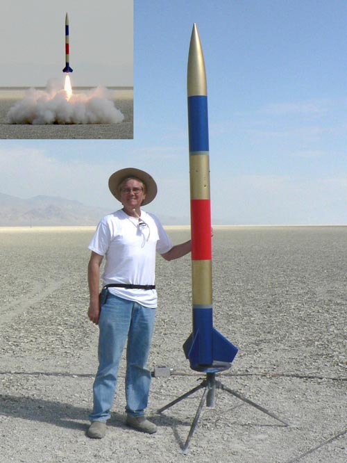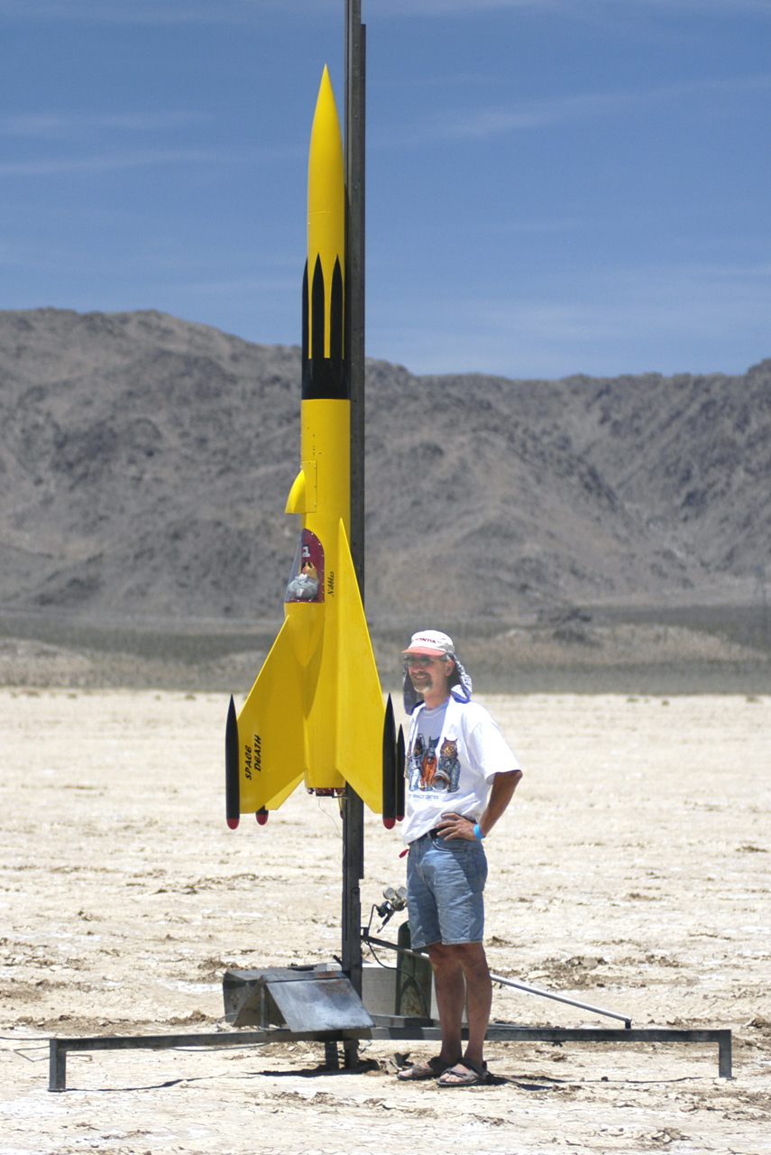His craft, Space Death, an 11 foot tall, 8" diameter, screaming yellow sportster of a rocket, will be powered by a central M1315.