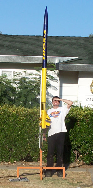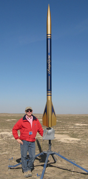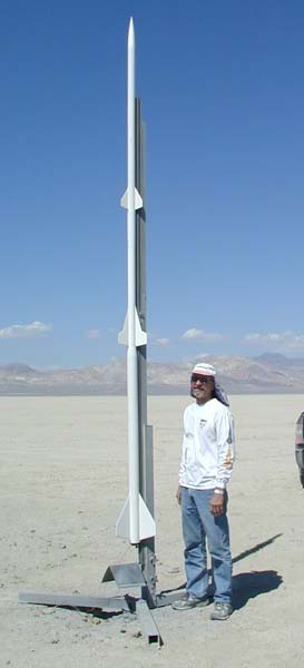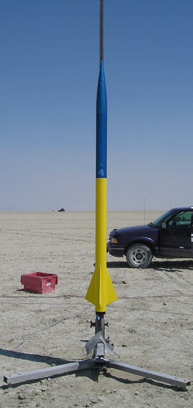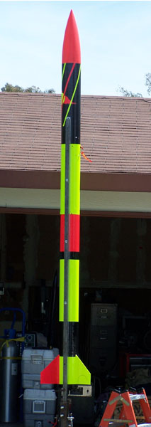 Altitude: 15K Motors: M1297 & K185 Project Goal: This is my first 2 stage high power rocket. Goal is successful launch and recovery of a 2 stage, plus testing and validation of the abilities of the Garmin Astro GPS system as applied to rocketry for GPS information download and rocket retrieval. Project Note: Eventually will be entered in the "Mt Rainier" contest. The goal of that contest is to determine who of the MSMD team can fly closest to 14,410' with a 2 stage rocket